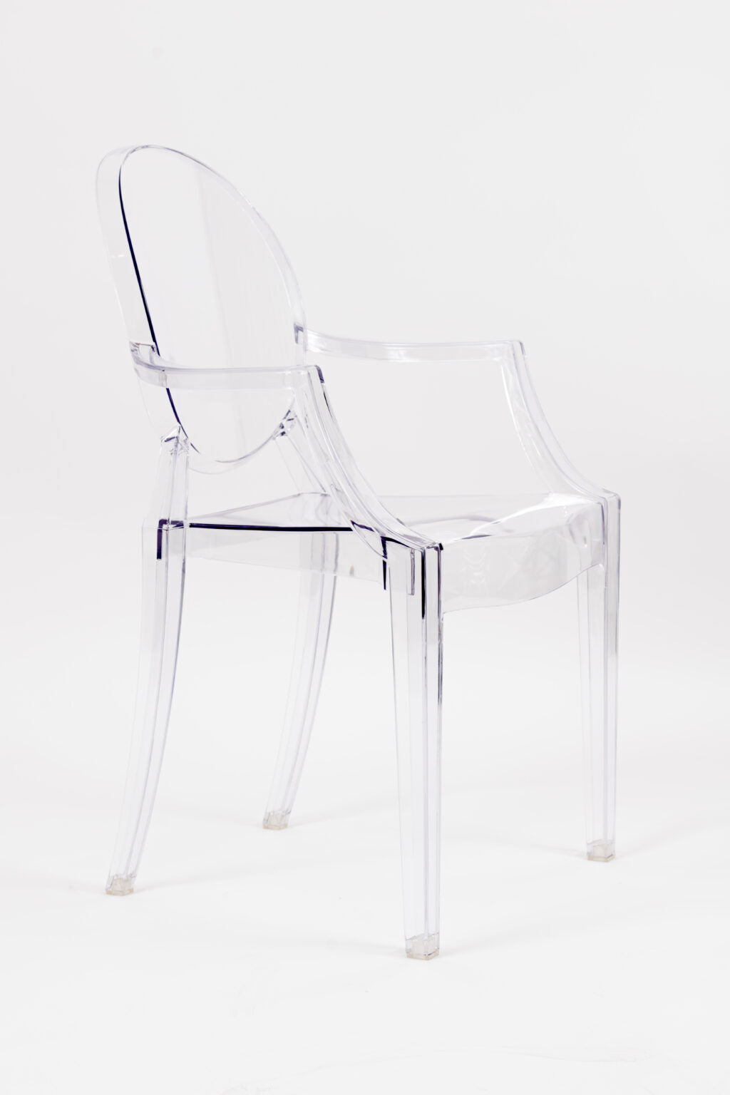 This stunning replica is crafted from sturdy polycarbonate and emulates true 18th Century French style in a contemporary design. This clear as crystal chair is a perfect addition to the dining room, living room or home office.